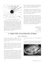Overview of the issue's contents, highlighting a wide variety of sundials in size and age, including a moondial, a clepsydra, and innovative new dials.