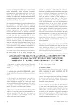 The official minutes from the 14th Annual General Meeting of the British Sundial Society. It covers reports from council members and specialists, election of officers, and other society business.