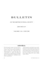 This issue of the Bulletin of the British Sundial Society discusses the versatility of sundials in the context of both art and science. It highlights a featured article on a Henry Wynne double horizontal dial and apologises for the late publication of the issue.