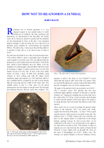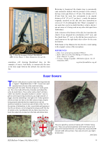 This section highlights articles in the issue, including a portable sundial from the Lviv Historical Museum, West Coast obelisks, a vanished sundial in Great Yarmouth, a Welsh slate dial investigation, a new dial at Peterhof, and the Westminster School sundial. It also informs readers that the Annual Report and Accounts will be published in the June issue.